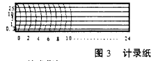 記錄紙其長度和寬度根據(jù)記錄設備要求,其橫坐標可以設計成以小時為單位,也可以設計成以天為單位,可以根據(jù)用戶要求設計成不同型式,其縱坐標也是根據(jù)流量公式Q=CHN計算得到,量程可自己選擇,其樣式可參見圖3。