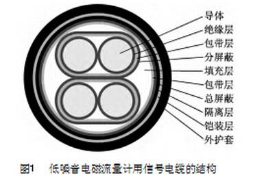 在石油化工、冶金、食品飲料、制藥、造紙、染料等眾多領(lǐng)域,通常采用污水處理流量計對流動的各種混濁、懸浮液體介質(zhì)(水煤漿、泥漿污水、水泥混凝土漿、紙漿、金屬流體等)的流量進行測量。污水處理流量計用信號電纜主要用于將污水處理流量計的實際測量結(jié)果信號傳輸至顯示系統(tǒng)。隨著污水處理流量計測量系統(tǒng)中電路的日趨復(fù)雜和對信號傳輸要求的逐步提高,傳統(tǒng)污水處理流量計用信號電纜的性能已無法滿足使用要求,因此本公司開展了一種新型低噪音污水處理流量計用信號電纜的研制。