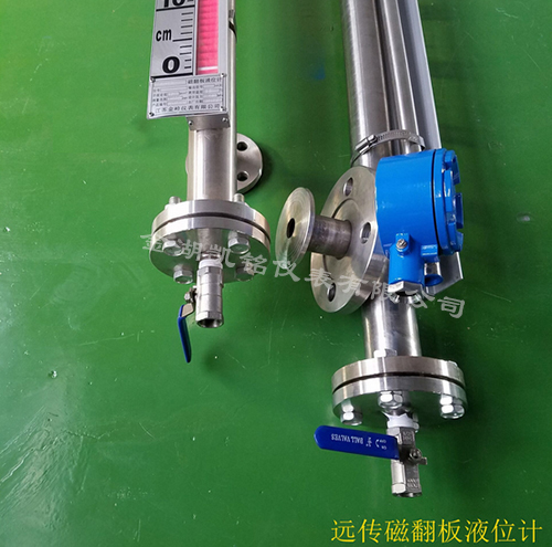 在管體的另一側(cè)可按用戶需要加裝電遠傳變送器,將液位高度轉(zhuǎn)換成標(biāo)準(zhǔn)電流信號輸出,以供液位信號輸出,以供液位信號遠傳至二次儀表進行指示控制與檢測。