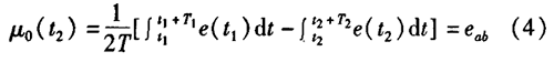 智能濃硫酸電磁流量計一般都采用工頻交流電源供電,其電源電壓的幅值和頻率的變化都會給智能濃硫酸電磁流量計帶來電源性干擾噪聲。對電源電壓的幅值變化,因采用多級集成穩(wěn)壓,一般而言電源電壓的幅值變化對電磁流量的測量精度影響不大。當電源電壓的頻率波動時,雖然其波動范圍有限,但對智能濃硫酸電磁流量計測量精度影響較大。為了解決工頻干擾問題,實現(xiàn)對流體流速感應電勢e柚信號的準確測量,需利用以下基本關系:①勵磁周期為工頻周期的整數(shù)倍,即勵磁頻率為50/nHz(n為偶數(shù));②正負勵磁下的同相位采樣。圖2是對應低頻矩形波勵磁形式下的典型電勢信號形式,按上述關系在一個勵磁周期下,若假設t。和t:點為工頻干擾的等效干擾點,且采樣寬度T=T1=T2,則e –ab的基本算式為:,