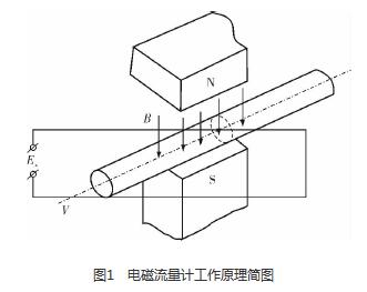 污水處理廠進(jìn)水流量計是利用法拉*電磁感應(yīng)定律設(shè)計的流量測量儀表,用于測量導(dǎo)電液體的體積流量。根據(jù)法拉*電磁感應(yīng)定律,當(dāng)導(dǎo)體切割磁力線運動時,導(dǎo)體內(nèi)將產(chǎn)生感應(yīng)電動勢Ex(圖1),方向根據(jù)右手定則確定,感應(yīng)電動勢Ex的大小與磁場的磁感應(yīng)強度B、傳感器管道的內(nèi)徑D和流過導(dǎo)電液體的流速V成正比,B、D、V三者相互垂直,即Ex=BDV。
