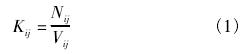 式中:Kij為*i檢定點(diǎn)*j次檢定的儀表系數(shù),L-1或(m3)-1,其中,i=1,2,3,…,m,m為檢定點(diǎn)數(shù),m≥3,j=1,2,3,…,n,n為檢定次數(shù),n≥3;Nij為*i檢定點(diǎn)*j次檢定時流量計顯示儀表測得的脈沖數(shù);Vij為*i檢定點(diǎn)*j次檢定時標(biāo)準(zhǔn)裝置測得的實際流量,L或m3。
