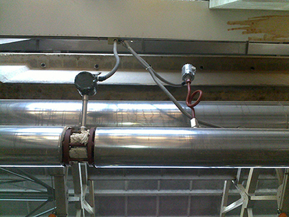 渦街流量儀表應(yīng)盡量避免安裝在振動較強(qiáng)的管道上。若必須安裝,須在其上下游2D處加設(shè)管道緊固裝置,并加防振墊,加強(qiáng)抗振效果。