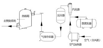 以原料萘為例。萘由原料儲罐經(jīng)液萘泵加壓后進入萘蒸發(fā)器,液萘在萘蒸發(fā)器內(nèi)由中壓蒸汽加熱汽化分離,經(jīng)流量調(diào)節(jié)閥、流量計和氣萘切斷閥后進入汽化器;空氣經(jīng)風機加壓后,經(jīng)空氣加熱器加熱后進入汽化器,氣萘和空氣在汽化器內(nèi)混合均勻后進入氧化反應器上部,經(jīng)催化床層發(fā)生氧化反應生成苯酐和少量的副產(chǎn)物(以順酐、苯甲酸、萘醌、和鄰苯二甲酰亞胺為主);反應氣體經(jīng)煤氣流量計冷卻后再進入切換冷凝器進行凝華捕集,少量未被捕集的有機物和不凝氣體經(jīng)尾氣管路進入蓄熱焚燒裝置焚燒處理,焚燒后的尾氣達標排放。