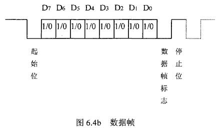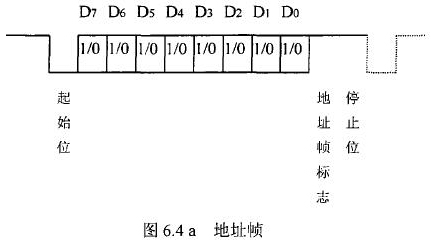 測(cè)水流量計(jì)等節(jié)點(diǎn)設(shè)備和站內(nèi)PC機(jī)間的通信采用異步串行通訊控制規(guī)程,并采用地址位喚醒握手協(xié)議。因此在協(xié)議中規(guī)定了傳地址和傳數(shù)據(jù)兩種不同的幀格式,如圖.64所示。地址幀和數(shù)據(jù)幀由11位構(gòu)成,幀格式為l位起始位,l位停止位,8位數(shù)據(jù)位,1位*9位。我們將*9位設(shè)定為“地址/數(shù)據(jù)指示位”,用來區(qū)分所發(fā)送/接受的幀信息是地址幀還是數(shù)據(jù)幀。*9位為1,表示PC機(jī)發(fā)送/接受的是“地址幀”*9位為O,表示主機(jī)發(fā)送/接受的是“數(shù)據(jù)幀”。命令幀與校驗(yàn)和的發(fā)送格式與數(shù)據(jù)幀相同,因此可由數(shù)據(jù)幀演化得到。