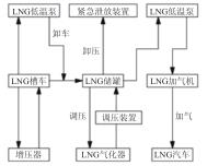 由于技術(shù)方面的原因,絕對(duì)的真空環(huán)境難以打造,導(dǎo)致LNG 使用到的真空設(shè)備不夠先進(jìn),難以實(shí)現(xiàn)絕對(duì)的隔熱,這就為熱交換創(chuàng)造了條件。圖2為加氣站工藝流程圖。