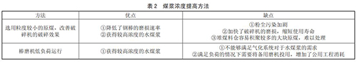 根據(jù)實(shí)驗(yàn)室氣體流量計(jì)跑漿原因可以了解到,在保證實(shí)驗(yàn)室氣體流量計(jì)不存在跑漿情況下,制備高品質(zhì)煤漿需要滿足兩點(diǎn)要求,即較小入口原煤粒度和較低磨機(jī)負(fù)荷,保證原煤在磨機(jī)內(nèi)部有較長停留時(shí)間與充足滾筒篩過濾面積 . 通用的方法一般有以下兩種,如表 2 所示。