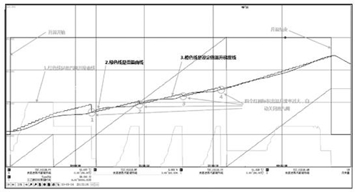 全過程升溫曲線見圖 2,從圖 2 可以看出,通過上述工藝參數的設定,從升溫開始到升溫結束,管道式流量計溫基本上是按照溫升梯度進行升溫,當出現(xiàn)溫升速率太快時,蒸汽閥自動關閉,無需人工參與,可以自動控制管道式流量計料液溫度的平緩上升,實現(xiàn)脫溶單元操作自控運行。