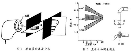 高溫電磁流量計(jì)流體流過彎管后,下游產(chǎn)生流速分布畸變,若是兩只鄰近相接的不同平面彎管,除流速分布畸變外還會(huì)有漩渦。這些現(xiàn)象要影響裝在下游的大部分類型流量?jī)x表(除容積式等少數(shù)類型外)的測(cè)量值,因此通常要求在流量?jī)x表安裝點(diǎn)之前有一定長(zhǎng)度直管段,改善進(jìn)入儀表的流動(dòng)狀況。高溫電磁流量計(jì)受彎管影響較小,直管長(zhǎng)度要求也遠(yuǎn)低于節(jié)流差壓式、渦街式等其他流量?jī)x表。但是當(dāng)前高溫電磁流量計(jì)精度為測(cè)量值的0.5%,甚至0.2%~0.4,即使影響量較小,還是受到人們的關(guān)注。