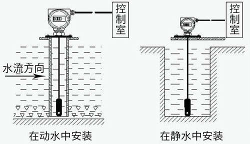 投入式靜壓液位計(靜壓式水位計)通常投入直徑大于水位計直徑的的PVC管、鋼管,管道固定在水中,不同高度打若干小孔,以便水通暢進(jìn)入管內(nèi)?;蛘咴诘撞考友b阻尼裝置,以過濾泥沙和消除動態(tài)壓力和波浪對測量的影響。