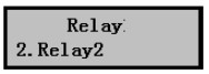 6)設(shè)置好繼電器1參數(shù)后點Mode鍵退回Relay繼電器設(shè)置菜單,按擊▼鍵選擇需要設(shè)置的其他繼電器:例如右圖,表示設(shè)置繼電器2。按擊OK鍵進入設(shè)置,方法同上。