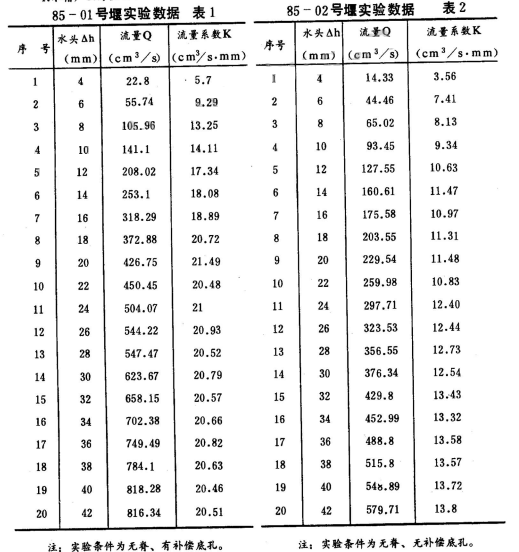 1.具有補償?shù)卓椎碾p曲線無脊薄壁堰(見圖7),在作用水頭超過補償孔以上時,通過流量與作用水頭之間具有較好的線性變化關系,其流量系數(shù)K值基本保持在20.5cm³/s·mm左右。