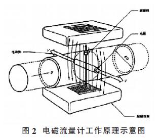 若在磁感應(yīng)強(qiáng)度為B的均與磁場(chǎng)中,垂直于磁場(chǎng)方向放一個(gè)內(nèi)徑為D的不導(dǎo)磁管道,當(dāng)導(dǎo)電液體在管道中以流速u流動(dòng)時(shí),導(dǎo)電流體就切割磁力線。如果在管道截面上垂直于磁場(chǎng)的直徑兩端安裝一對(duì)電極則可以證明,兩電極之間也將產(chǎn)生感應(yīng)電動(dòng)勢(shì)E=kBDv (1-2)