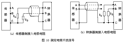 按圖7-10所示及上文"電極接觸電阻的測(cè)量"所測(cè)得兩電極的大體電阻值RA、RR,分別按圖a、b接入電路所測(cè)得零點(diǎn)之差應(yīng)在滿(mǎn)度值1%或其基本誤差范圍以?xún)?nèi)。